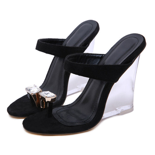 Transparent wedge toe high heel sandals