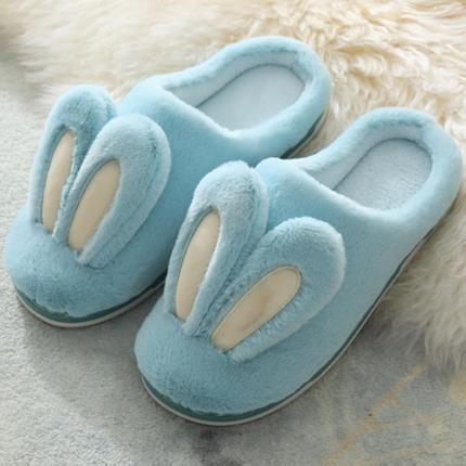 Fashion Women Slippers Winter Warm Couples Cute Rabbit Ears Soft Sole Home Indoor Ladies Plush Slides