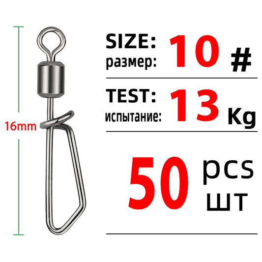 DNDYUJU 50pcs Fishing Connector Rolling Swivel With T-shape Snap Fishing Swivels Stainless Steel Beads Fishing Accessories