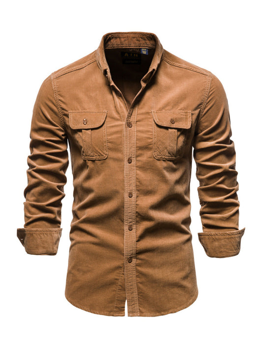 Men's corduroy slim-fit casual long-sleeve shirt