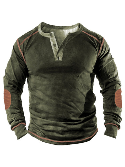 Open placket 3d printed henley suit long-sleeved top men