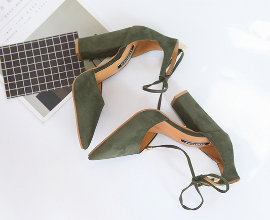 Nubuck Deep Mouth Sneakers Camel Pointed Toe Pumps Chunky Heel