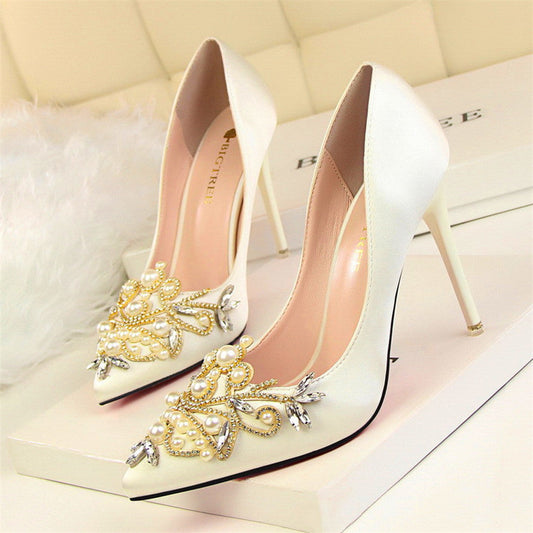Women Pumps Rhinestone High Heels Shoes Women Pointed Toe Crystal Pearl Party Shoes Sexy Wedding Shoes