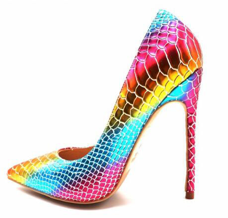 Sexy Stiletto Pumps Pointed Toe Metal Stone Pattern High Heels