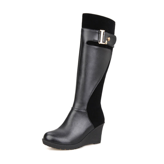 High-brushed Leather Boots Low-heel High Boots Martin Boots