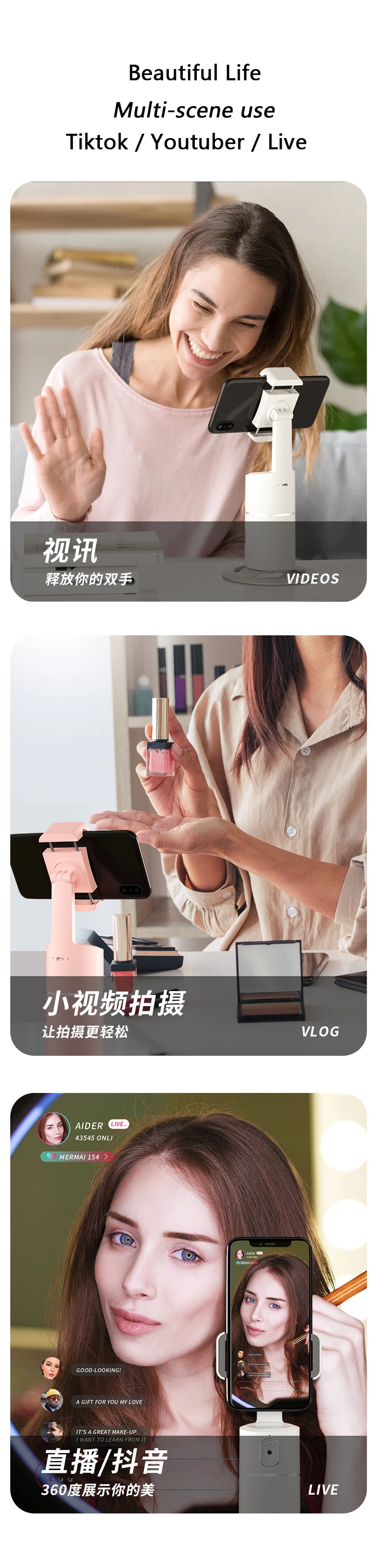 Auto Face Tracking Gimbal Stabilizer Phone Tripod Accessories 360 Rotation Live Smart AI Follow-Up Photo Vlog Video Recorder