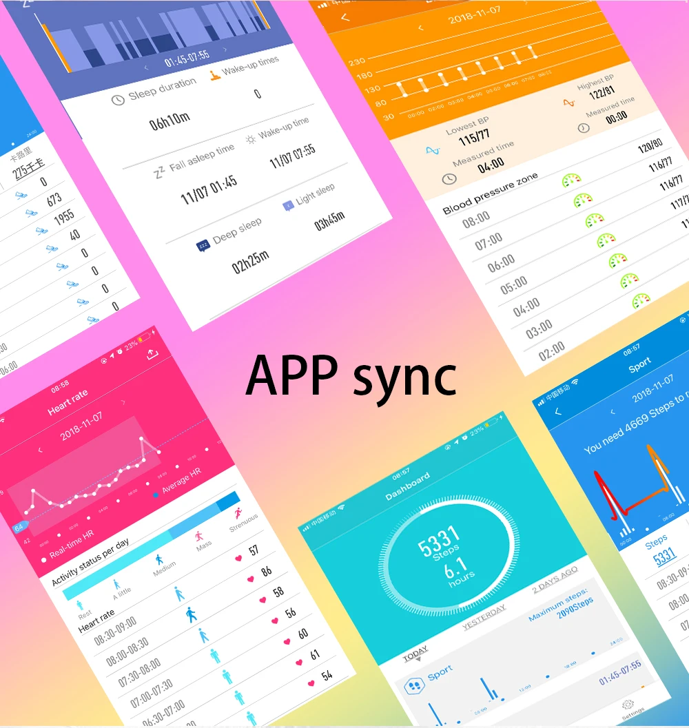 Heart rate monitoring, blood pressure, step, distance, calories, sleep