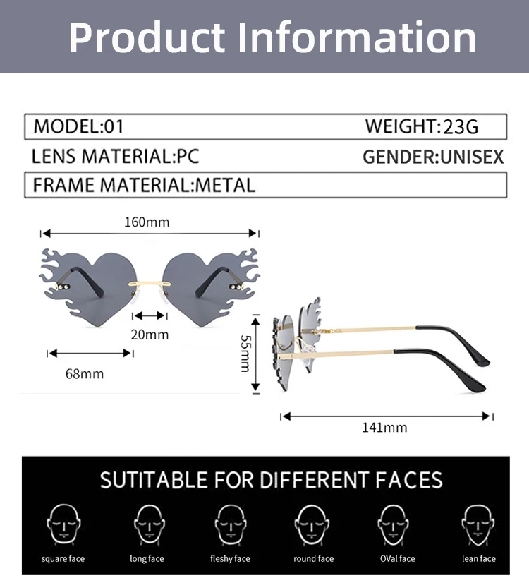 Look your best with these stylish heart-shaped sunglasses. Crafted with UV400 lens and ocean-tinted frames, they provide great eye protection as well as an on-trend look. Available in a variety of colors, these lightweight glasses have a borderless design to give a more seamless look.