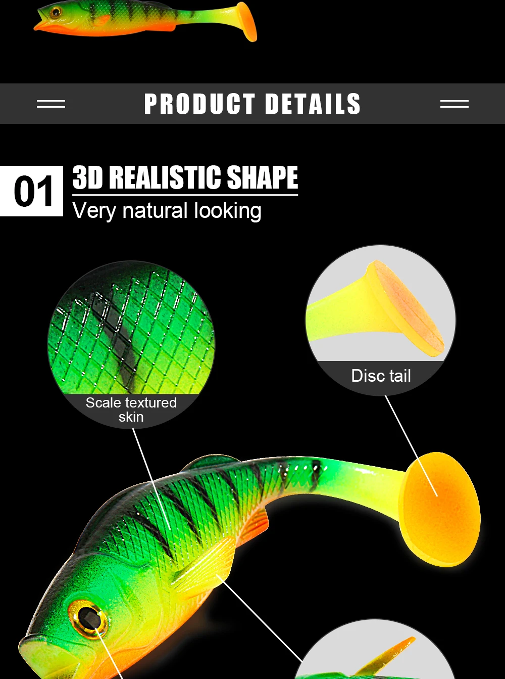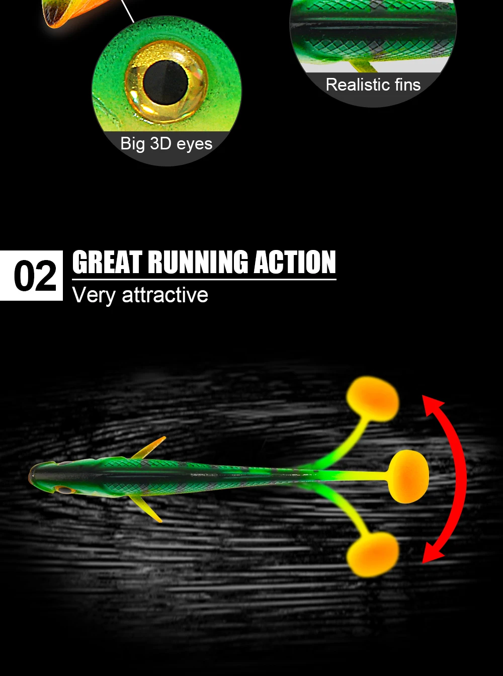 Spinpol Vigour Perch Fishing Lure 7cm 11cm 14cm Soft Bait Shad UV-Active Wobble Craft Rubber Fish Swimbait For Perch, Pike, Zander