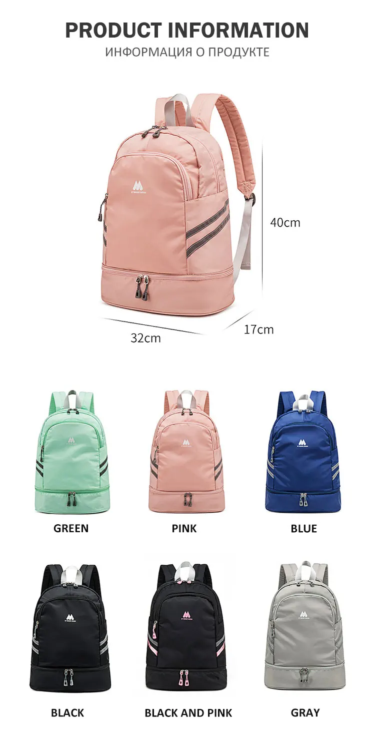 Women Pink Sport Gym Bag Waterproof Fitness Swimming Backpack Yoga Training Bag Shoe Compartment Travel Luggage Bag Sac De Sport